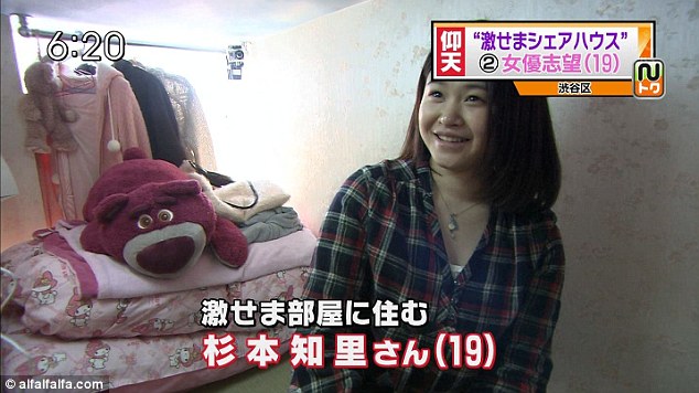The show also interviewed a 19 year-old named Chisato, who dreams of becoming an actress. Her box is only 1.5 tatami mats, measuring 2.44 meters across.